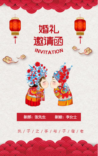 红色喜庆中国风中式婚礼时尚大气高端古典古风婚礼结婚请帖喜帖请柬邀请函