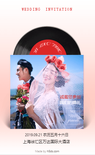 黑胶唱片婚礼邀请函请柬喜帖婚纱照展示520秀恩爱表白纪念册